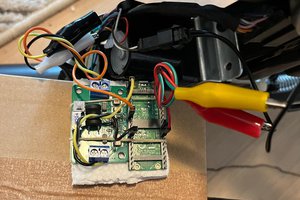 The relay is a Sharp Microelectronics model PR3BMF. I picked up that model because it is an 8 DIP package (small) and it has a decent Load current (max 1.2A) . I kinda copied the schematic from Sparkfun from their 8A Sharp relay . I designed the PCB with the possibility to add an external, more powerful, relay if needed.