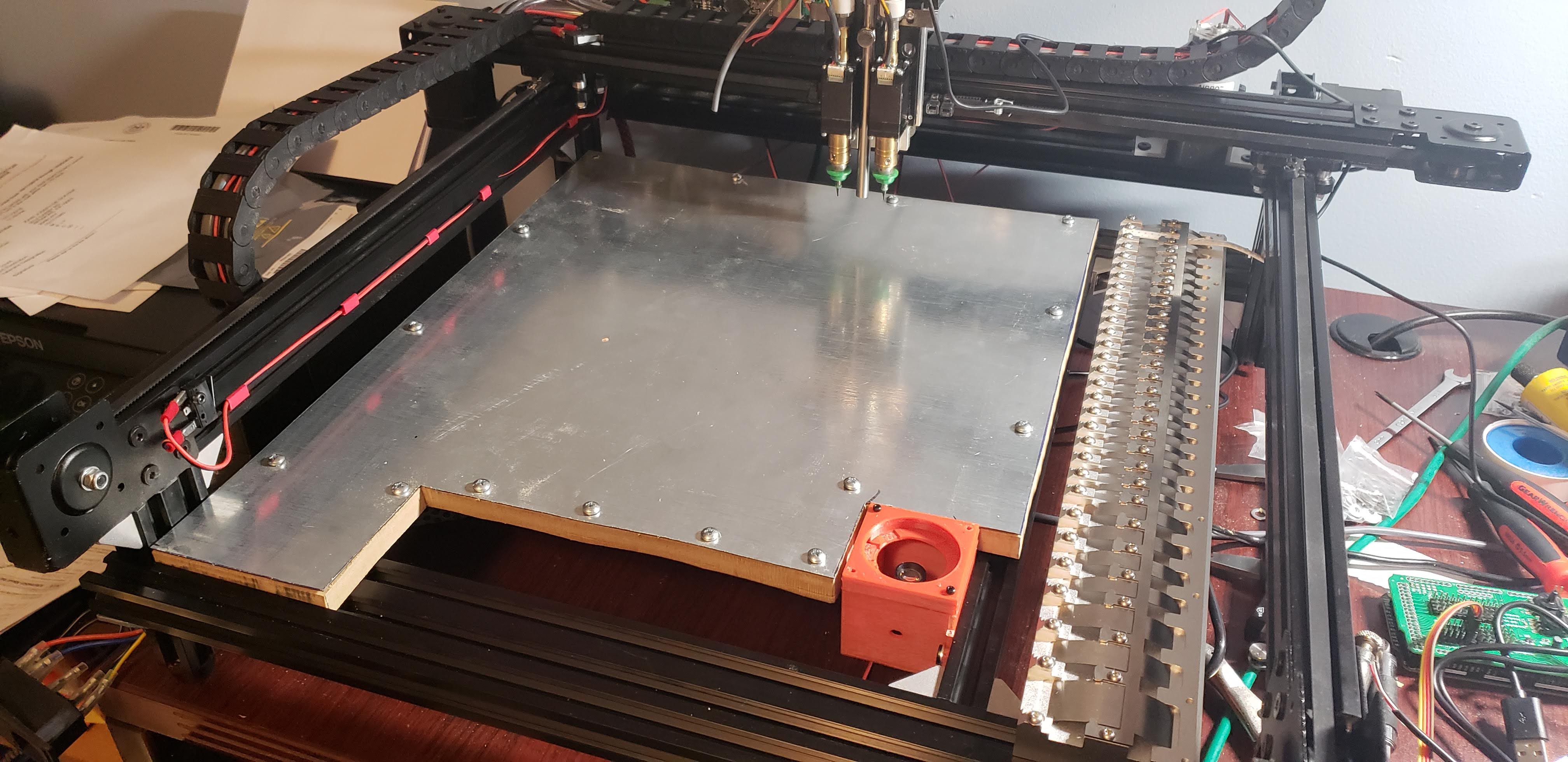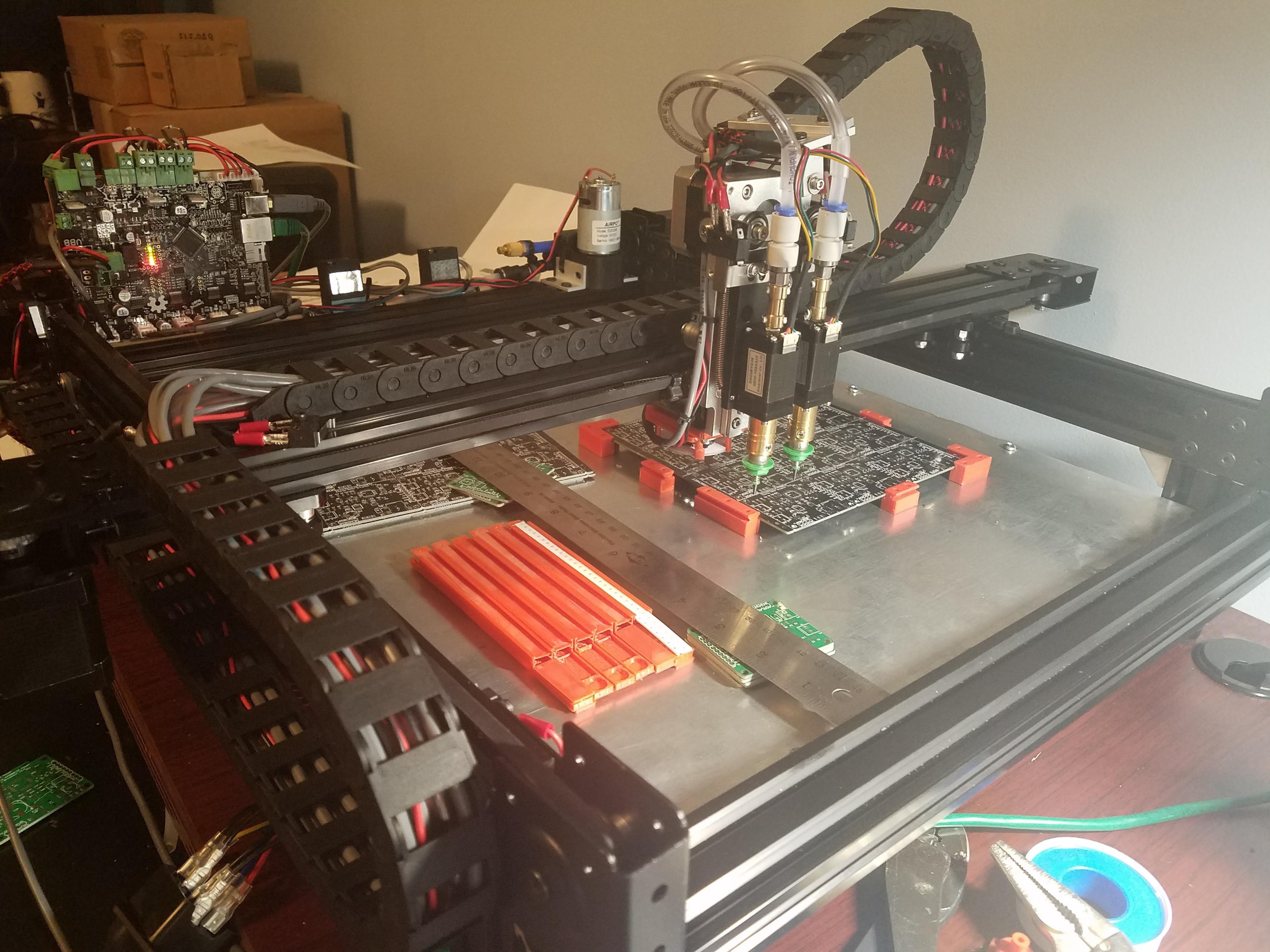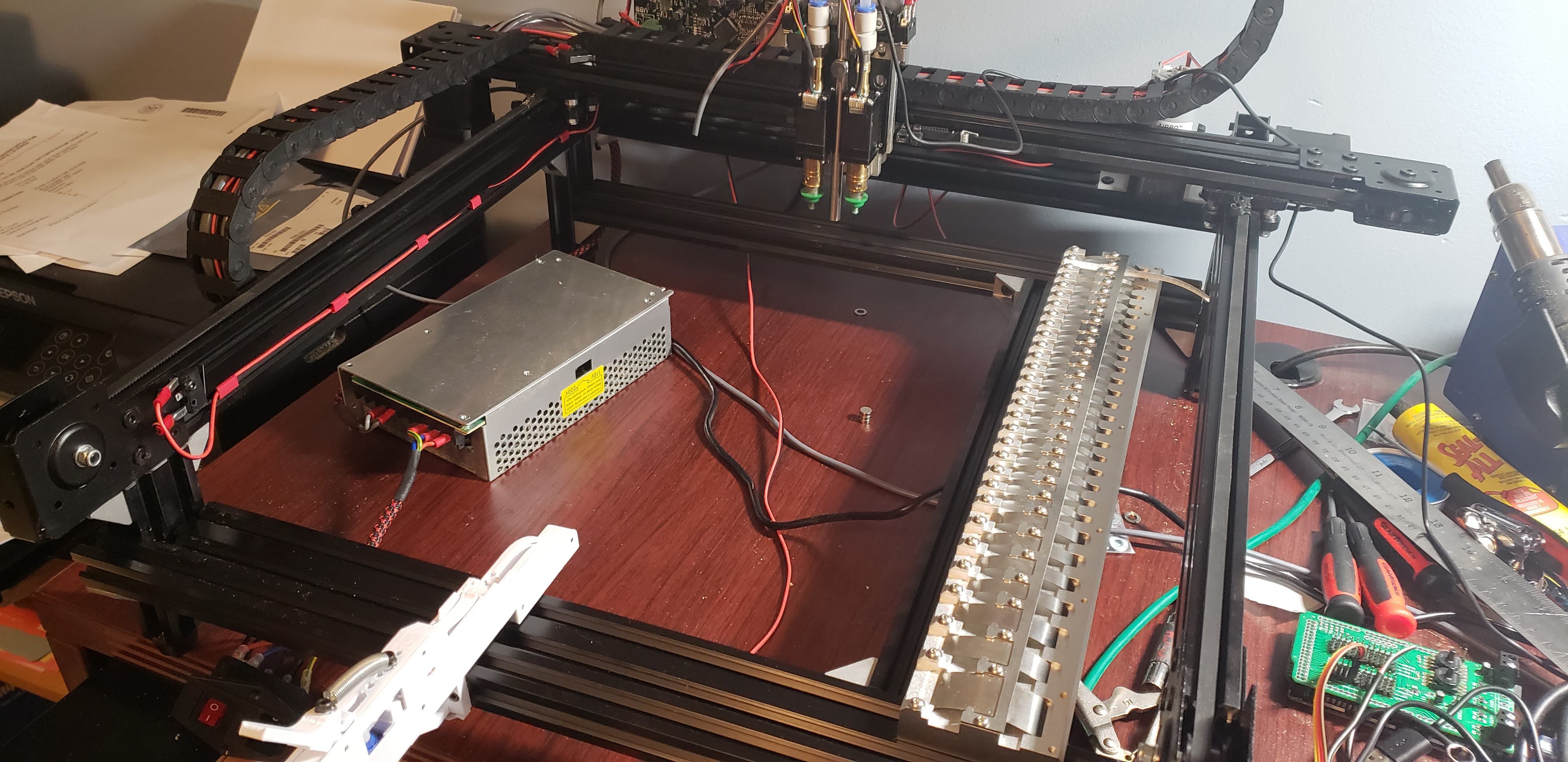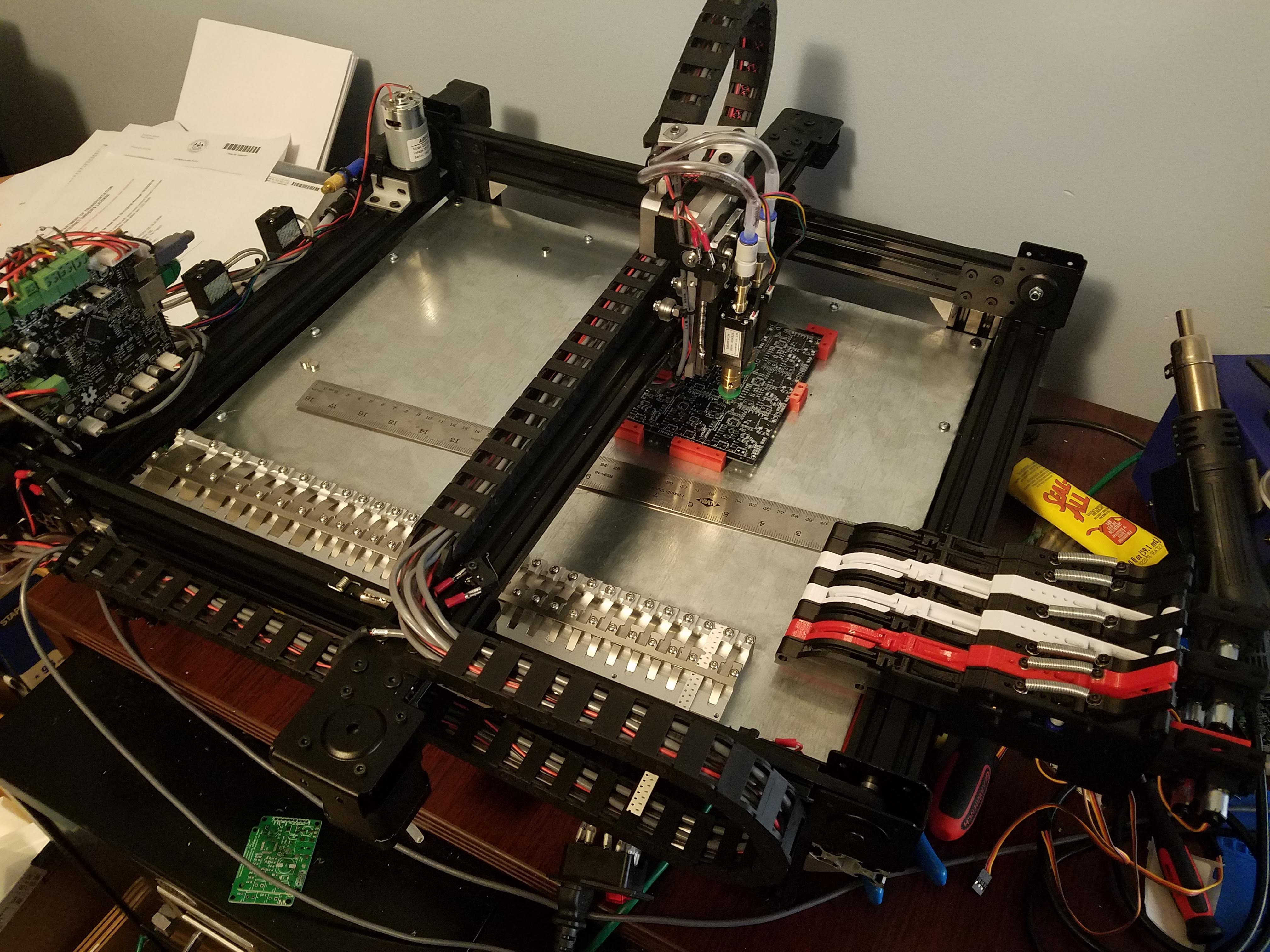 This PNP build pulls ideas from many different machines that came before this one. I used the OpenPnp Openbuilds as a starting point. I wanted to have a usable machine without spending thousands, while being able to add things (like auto feeders, and a nozzle changer) as needed.
