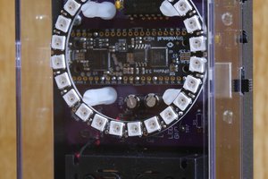 Starlite is controlled via three switches. The power switch enables/disables power from the power input micro USB connector. The upper pushbutton switch selects one of four display instruction sets. Each set can have up to 256 instructions. The lower pushbutton switch selects different brightness levels.