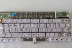 The buttons fastened to the side of the keyboard are menu buttons to adjust display brightness and contrast. The cable that connects this button board to the controller board can be seen in an earlier photo. Apart from this, only two other cables are required: a USB cable for the keyboard and another to connect the powerbank.