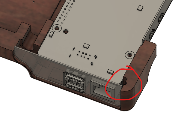 The screen and Raspberry Pi 5 would be placed back to back so I used the thinnest display I could find to minimize overall thickness. Although not a touch screen and “only” 800x480, using DSI vs. HDMI or GPIO met this goal. An RTL-SDR fit nicely beside the Pi, so including it was a no-brainer. The last major internal component is the UPS, which seems to give at least 5hrs of continuous YouTube playback. I will be doing a more structured stress test soon. Pad features and screw holes for components were included in the CAD model to help with assembly.