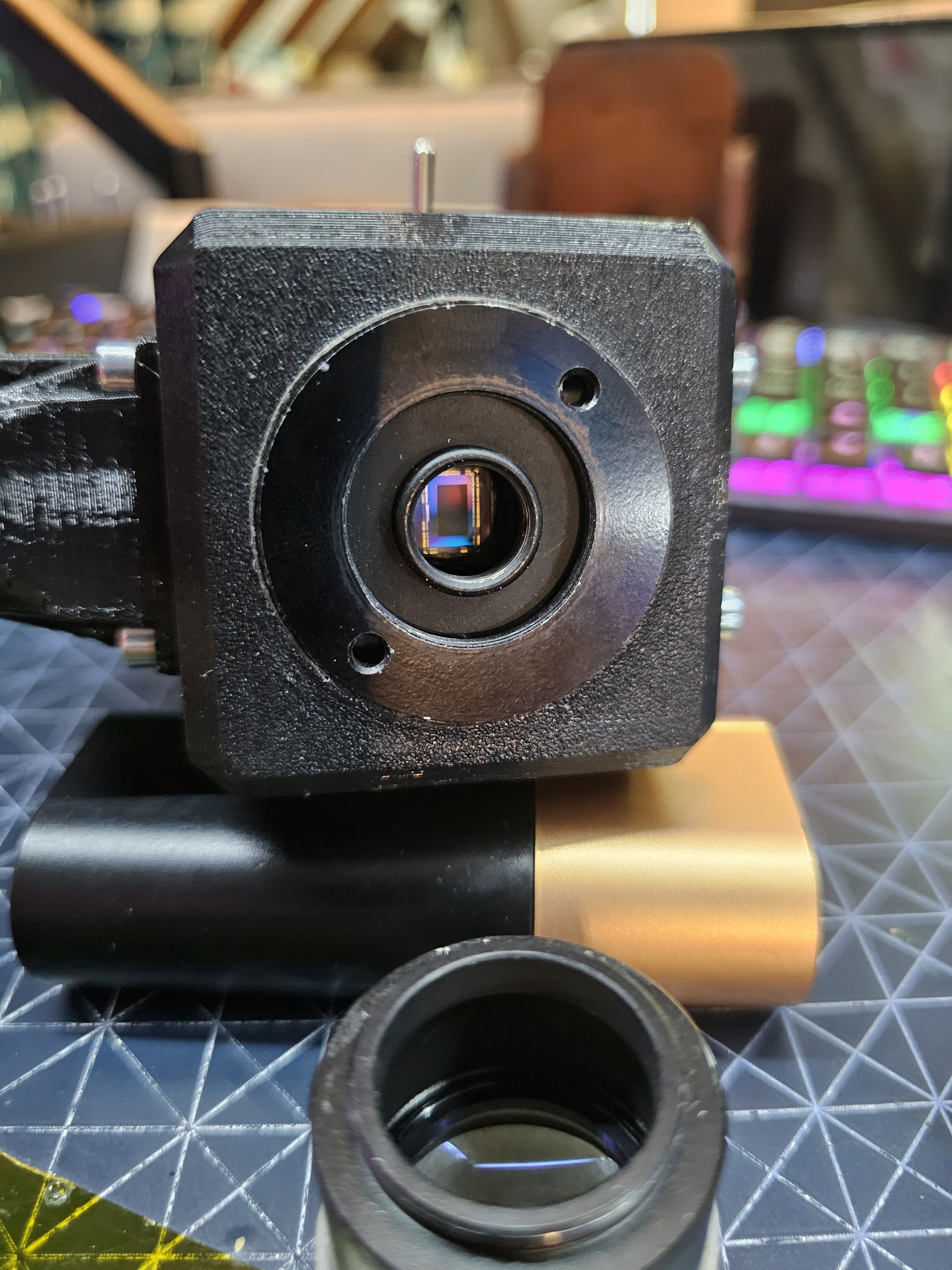 The components are assembled into a 3D-printed housing shaped like an eyepiece, with an electronic viewfinder inside. The result: drop it in your focuser, and you’re effectively looking through a “night-vision” eyepiece.