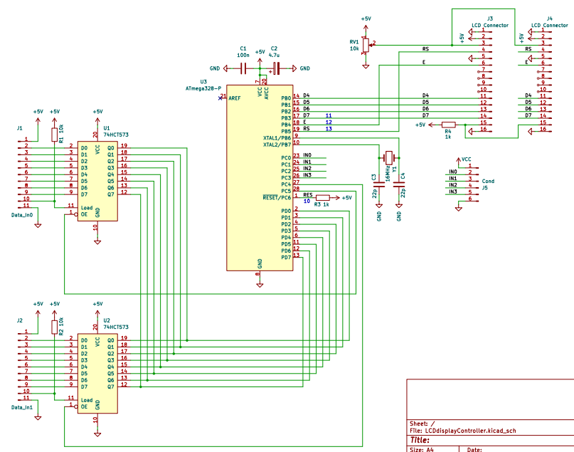 The boards in the picture above are hand wired, but to make it nicer and repeatable there needs to be a PCB layout for both cases. The two LCD modules 16x2 and 20x4 have different dimensions and so I changed the design for 2 connectors in parallel, one to be used for the 16x2 module and the other to be used by the 20x4 module.