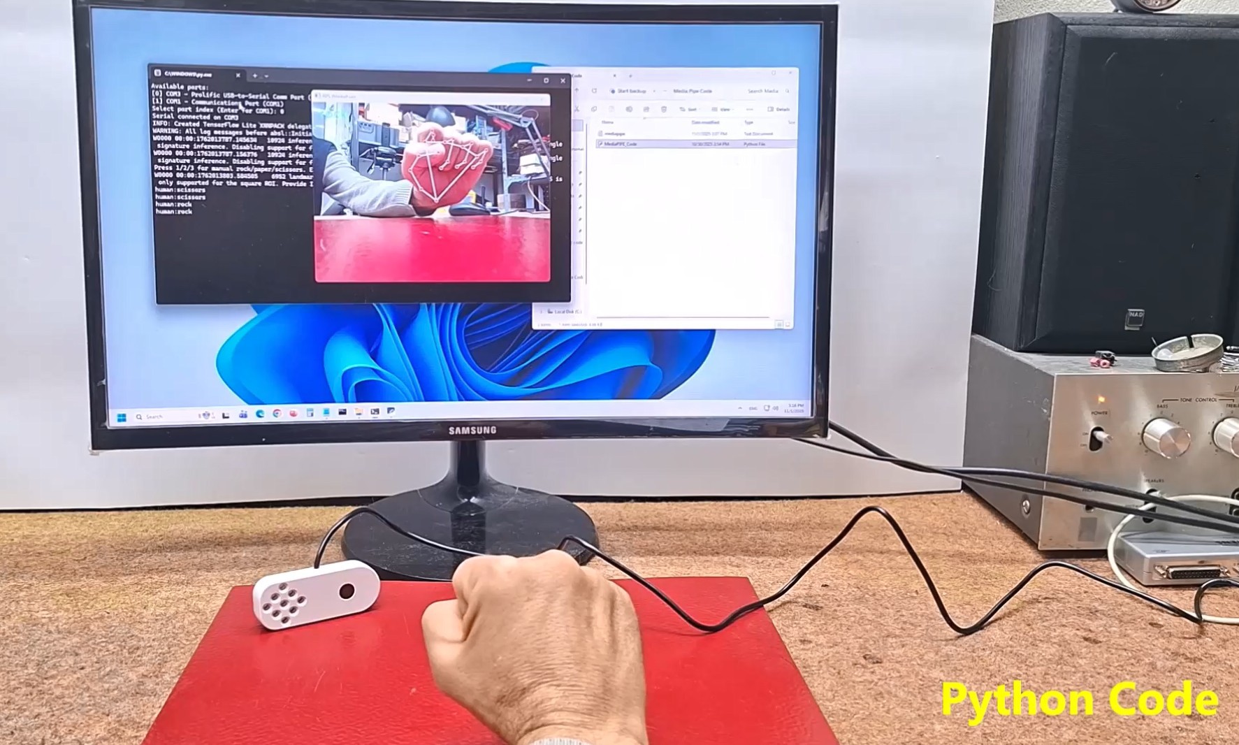 At the end of this text, the Python code named "MediaPIPE_Code" is given. We just need to start this Python script and in the cmd window we need to select the serial port on which the M5Stack...