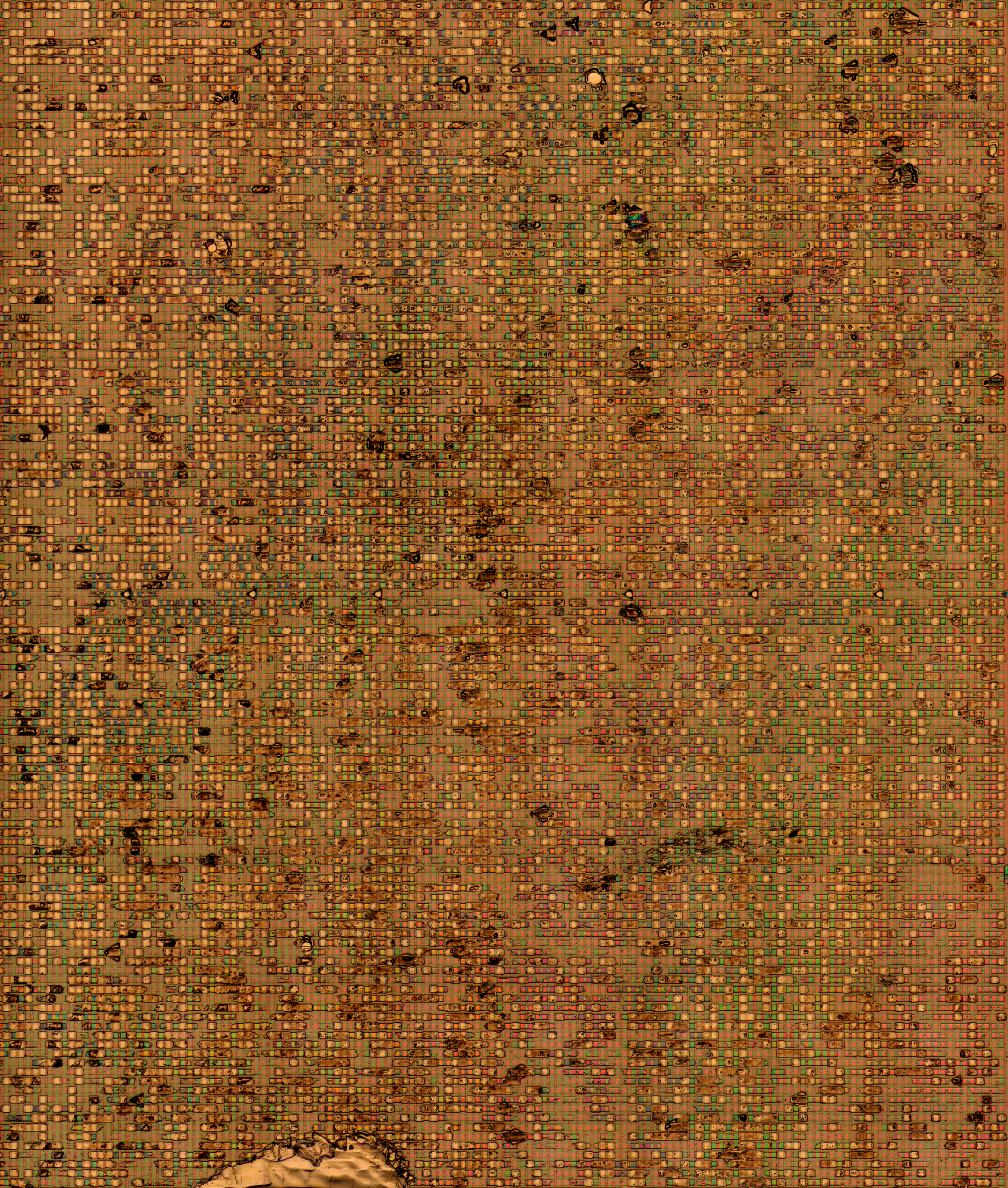 In the case of the SFMT, Sean had already followed the first method, but in the process of decapping the chip the die had been damaged. It was early in Sean's decapping career and this happens sometimes, but as a consequence he didn't have a complete picture of the ROM. I didn't fancy destroying my SFMT, so we investigated reconstructing the work done by Kevtris to make use of the second method.