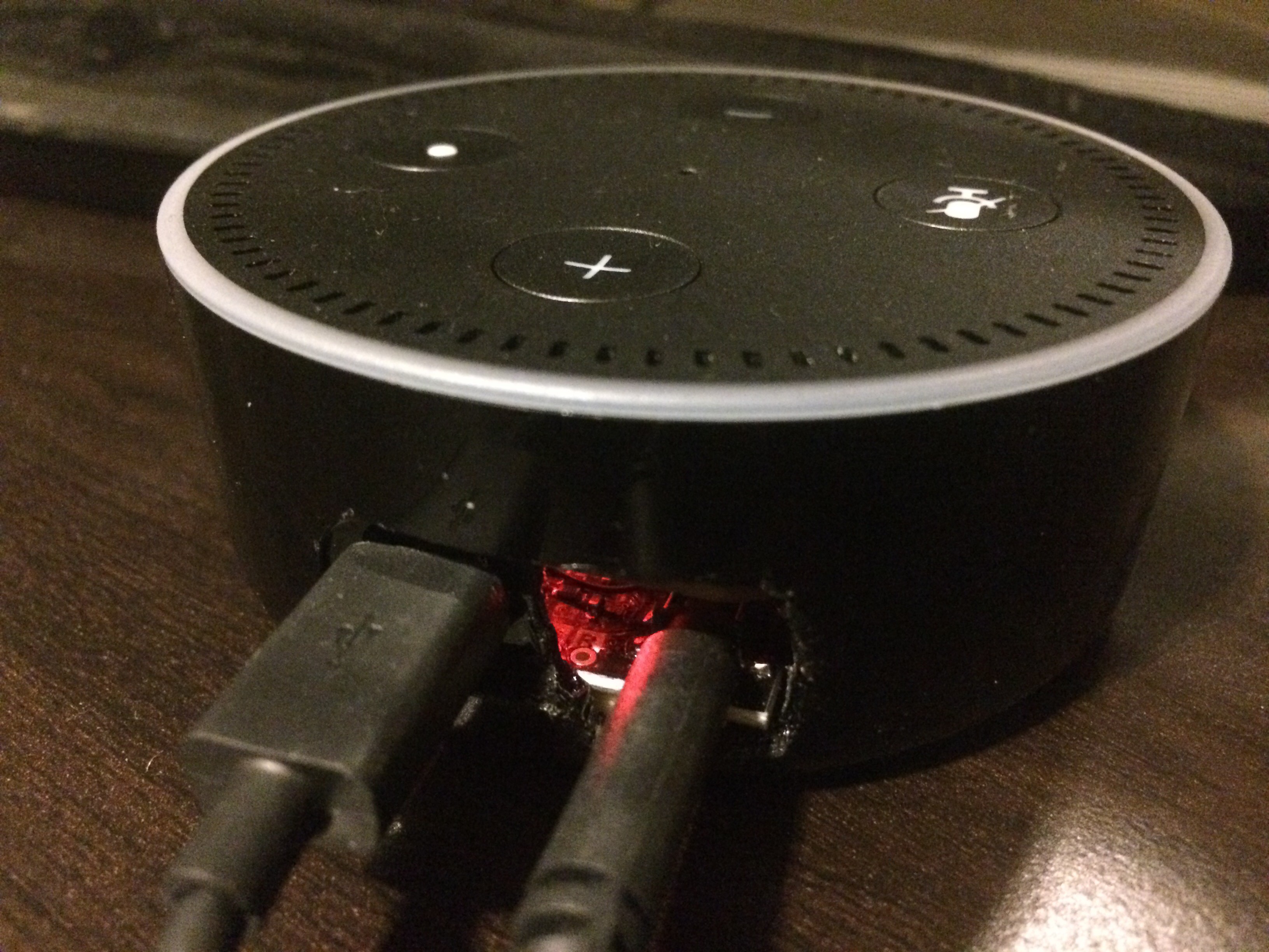 - Re-instate the Echo's internal speaker, and somehow make it less clunky to switch between using the internal speaker and the audio output. I'd love to be able to somehow detect the status of the amplifier (hooked up/powered on or off) and switch the outputs with a microcontroller, but it seems like the best solution as of now is to voice-control the switch using an esp8266 configured as an alexa "smart home" device. Looking for suggestions here.