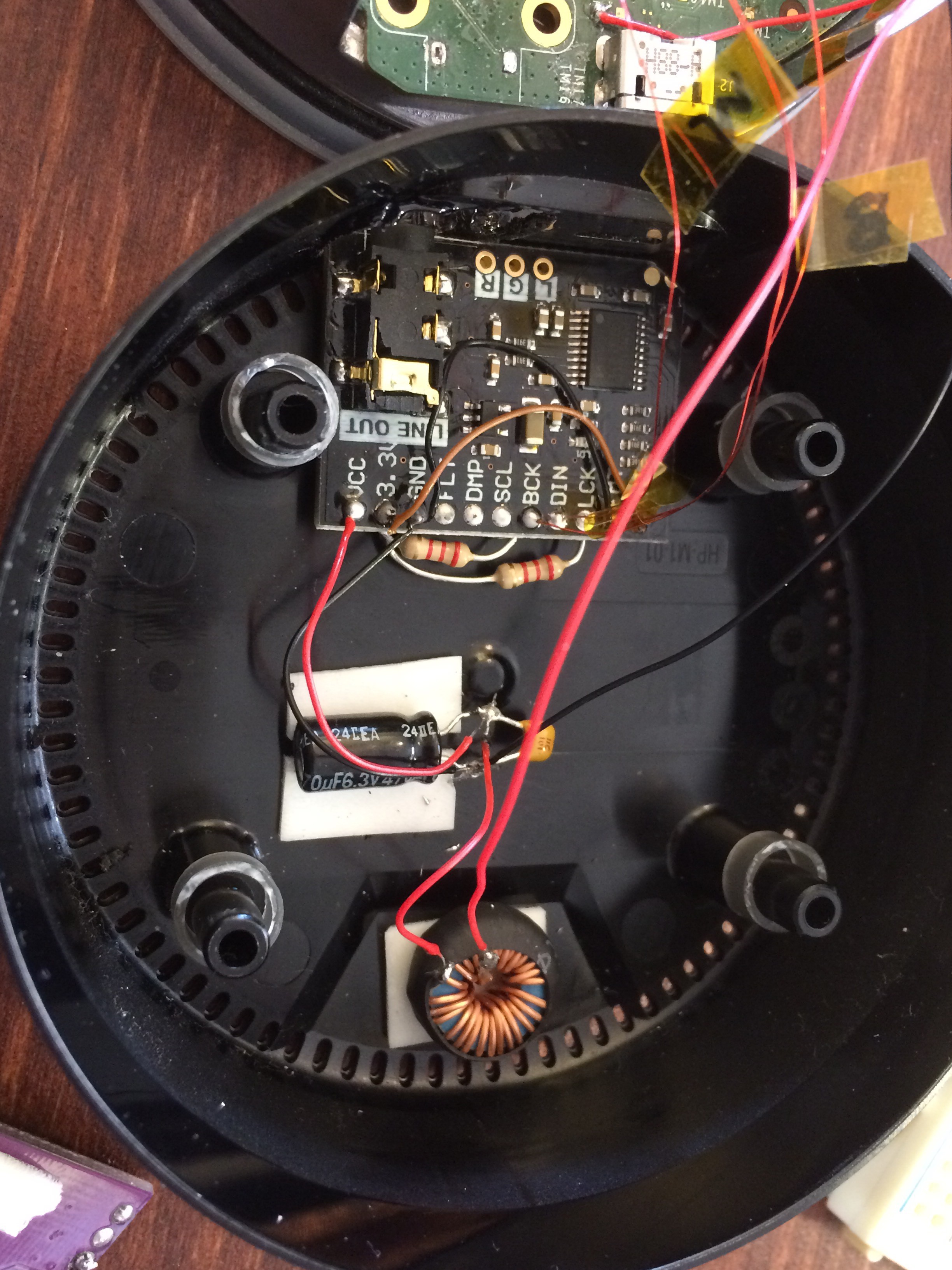 - manufacture a board to add a digital output, and 3D-print a larger volume bottom shell to house the additional board plus the internal speaker.