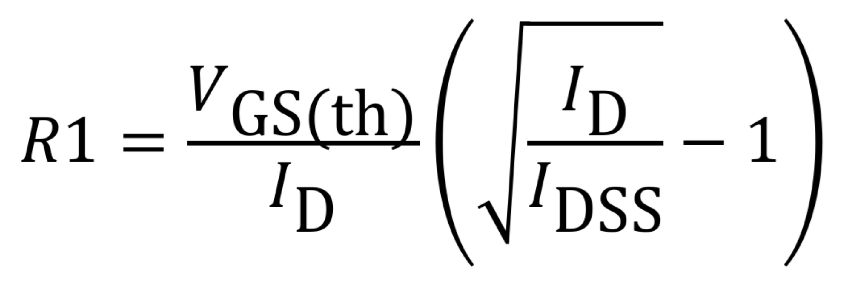The table below shows the calculated values of R1 for specific values of VGS(th), with Idss and Id held constant.