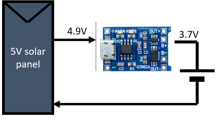 Because the 5V solar panel worked close to Vmp. The energy is lost because of the drop out voltage over the linear charger Conclusion: for outdoor applications you don’t need advanced MPPC. A TP4056 plus a 5V solar panel is more economic and pretty efficient. It is better to spent your money on a larger solar panel than on a MPPC energy harvesting chip